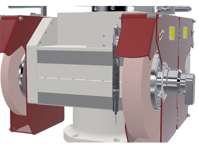 可旋转的砂轮架,标配2个外圆砂轮,可根据工艺需要选配不同的内圆外圆组合,最多可配4个磨头。旋转由高精度DD马达驱动,配备高精度的光栅,可轻易实现复杂工件的外圆,端面和内圆磨削,已经非圆磨削