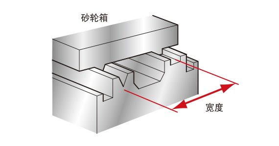 采用扩大了工作台导轨V平间距的宽大型V平导轨。提高工件的支撑刚性,为7.5(特殊规格15)kW的大功率磨削提供助力。宽大型V平导轨可支撑重磨削时砂轮箱承受的磨削负荷,保持高加工效率。